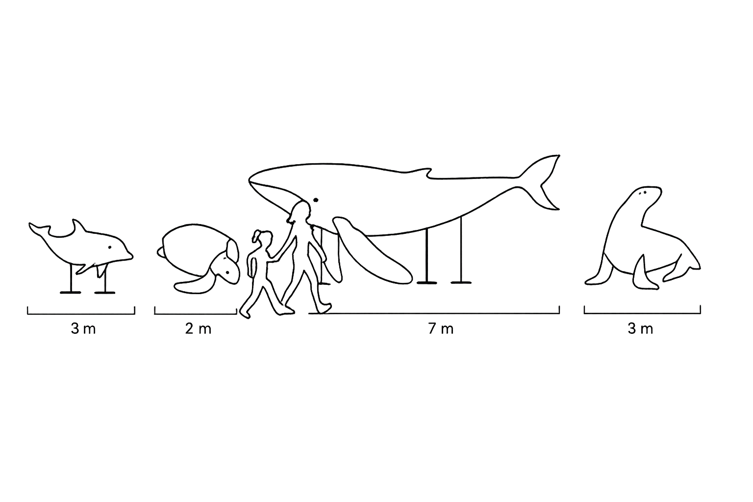 A Grandiosidade das espécies marinhas é apresentada em escala real, por meio de esculturas que unem estética, conhecimento científico e consciência ambiental.